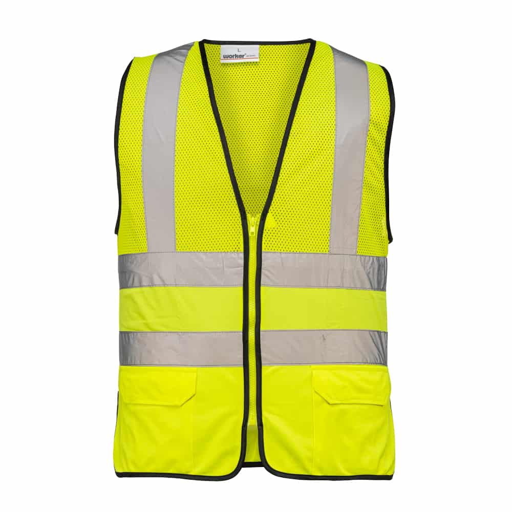 וסט קרגו כיסים ורוכסן חצי רשת צהוב