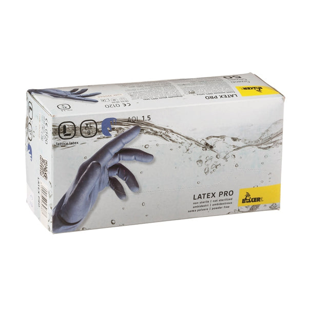 כפפות לטקס פרו חד-פעמי ללא טלק 50 יח' בקופסא