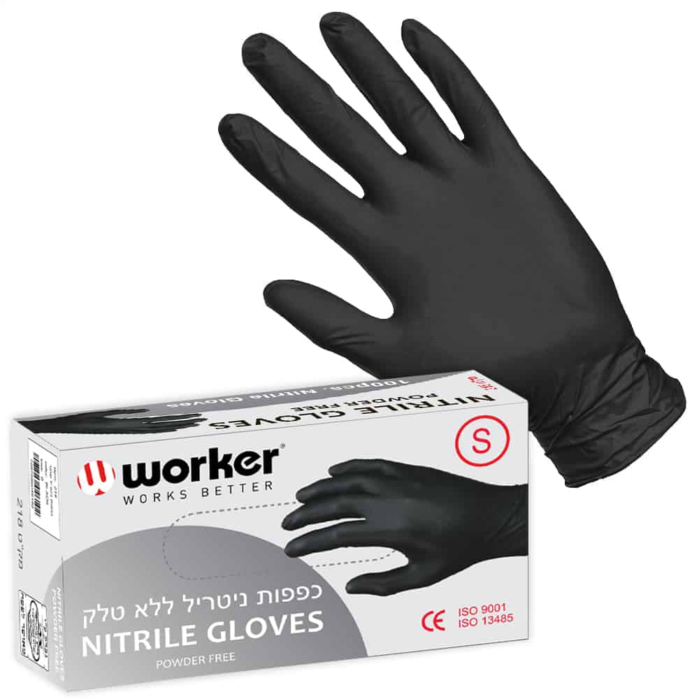כפפות ניטריל שחור 1000 יח' בקרטון 3.5 גרם